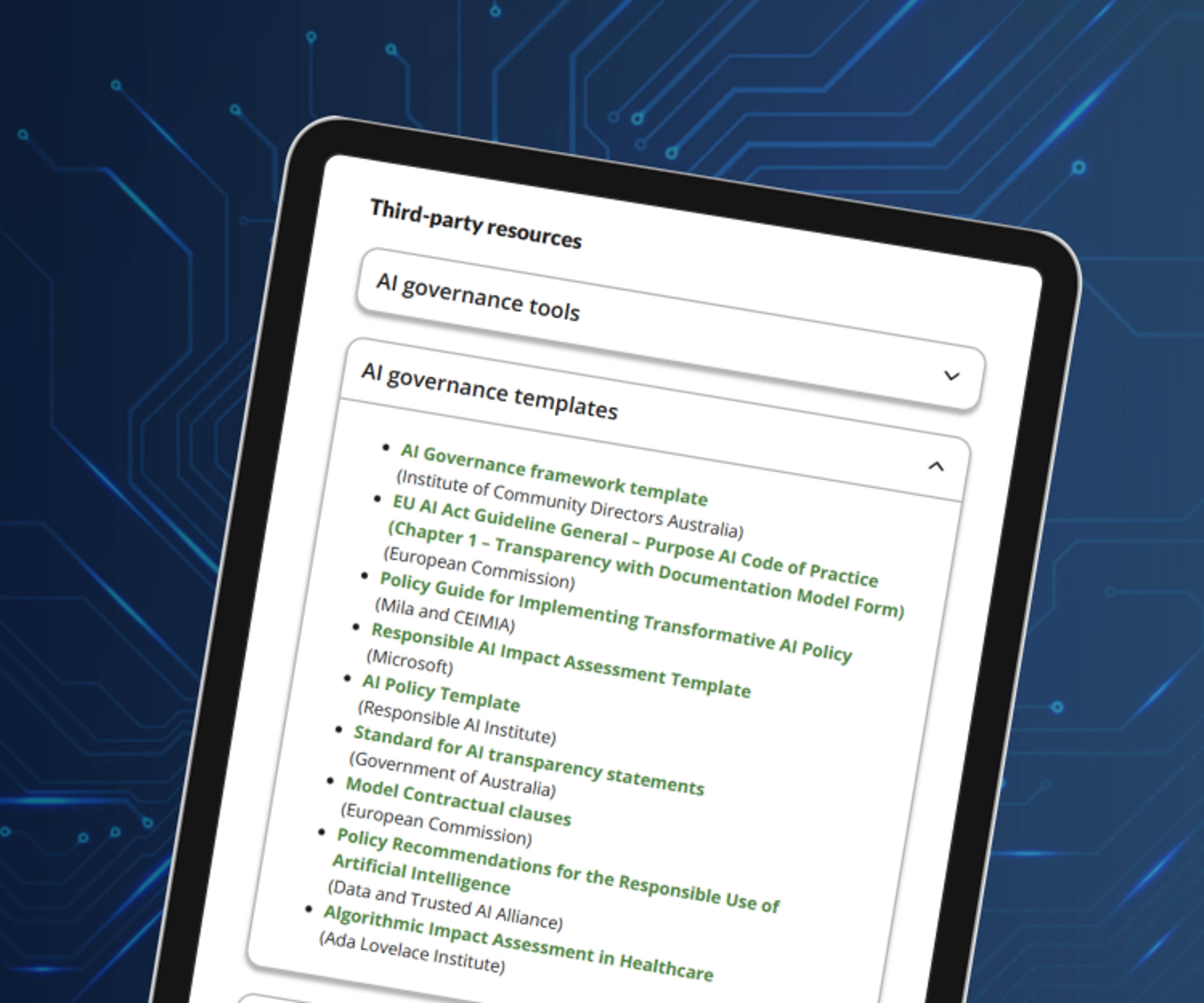 Third-party resources for AI governance