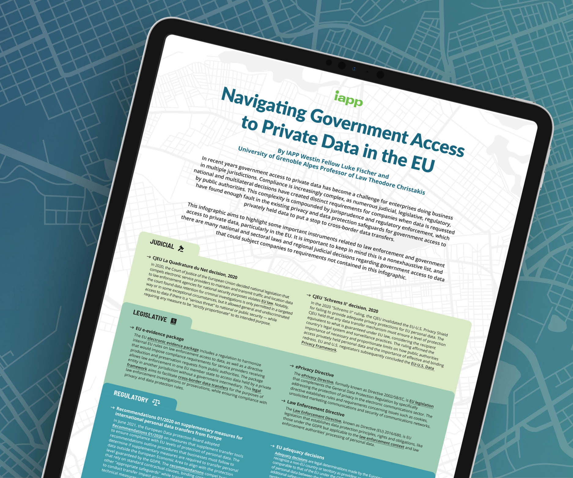 In recent years government access to private data has become a challenge for enterprises doing business in multiple jurisdictions. Compliance is increasingly complex, as numerous judicial, legislative, regulatory, national and multilateral decisions have created distinct requirements for companies when data is requested by public authorities. This complexity is compounded by jurisprudence and regulatory enforcement, which have found enough fault in the existing privacy and data protection safeguards for government access to privately held data to put a stop to cross-border data transfers.