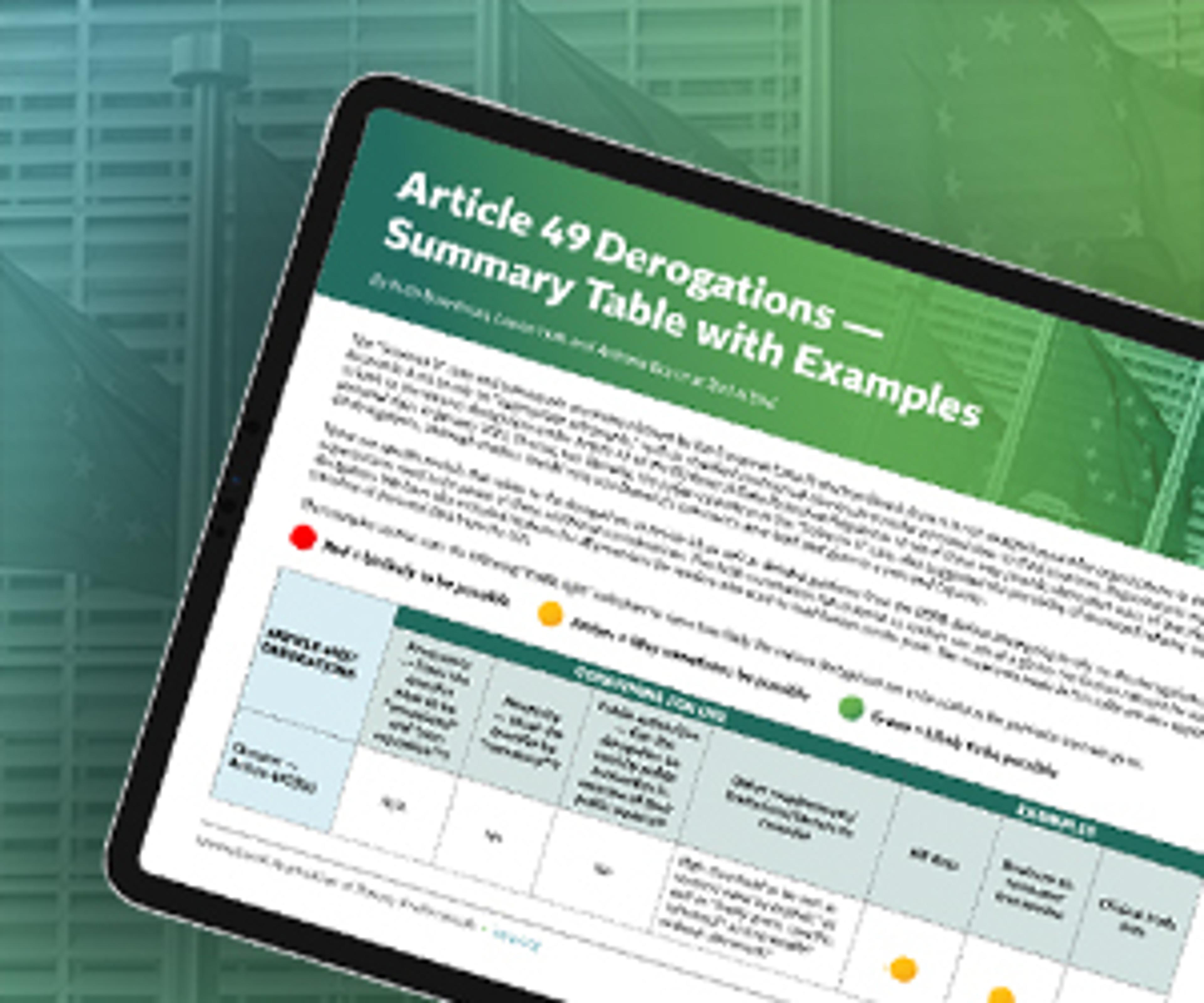 Article 49 Derogations Summary Table