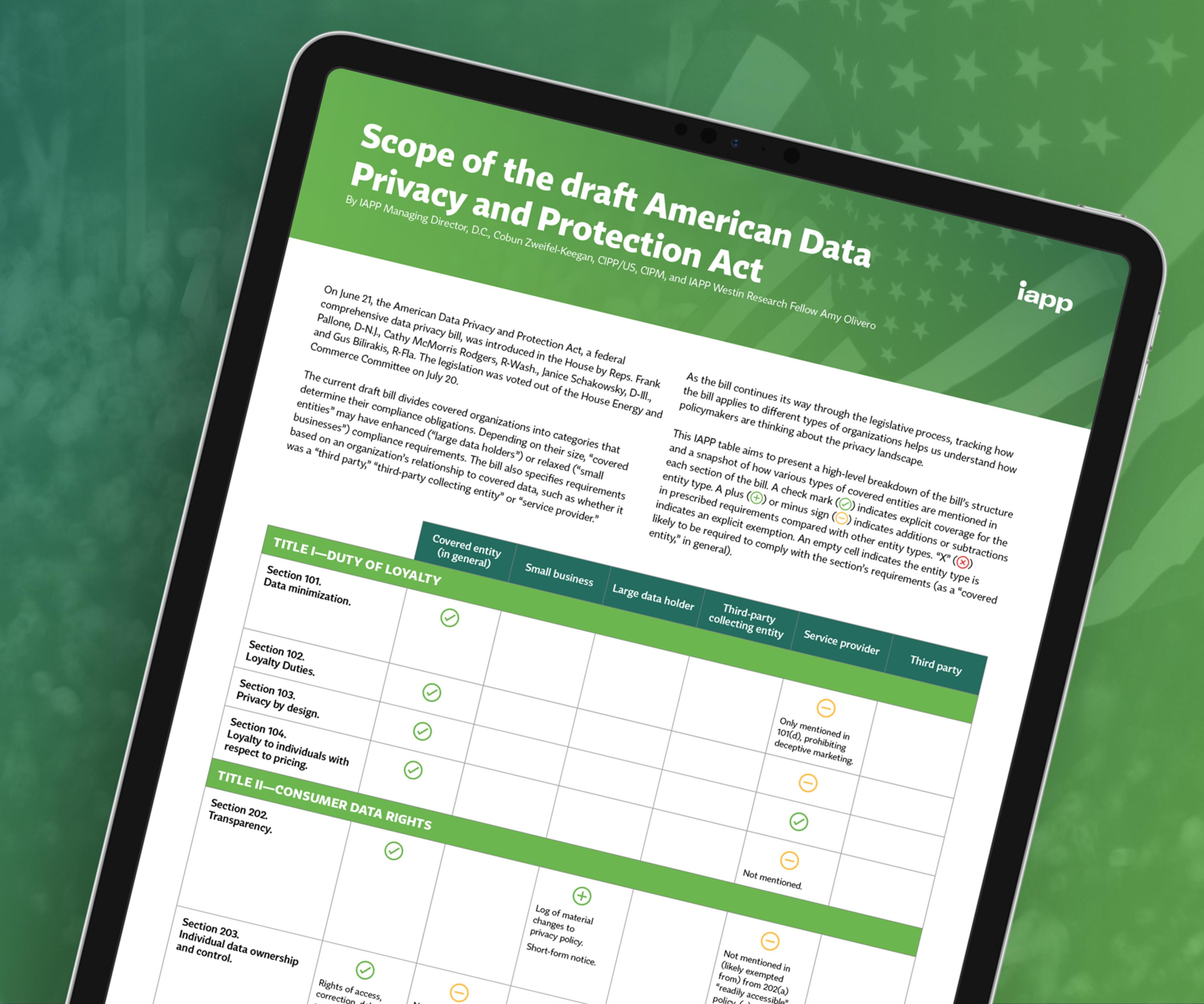 Scope of the draft American Data Privacy and Protection Act
